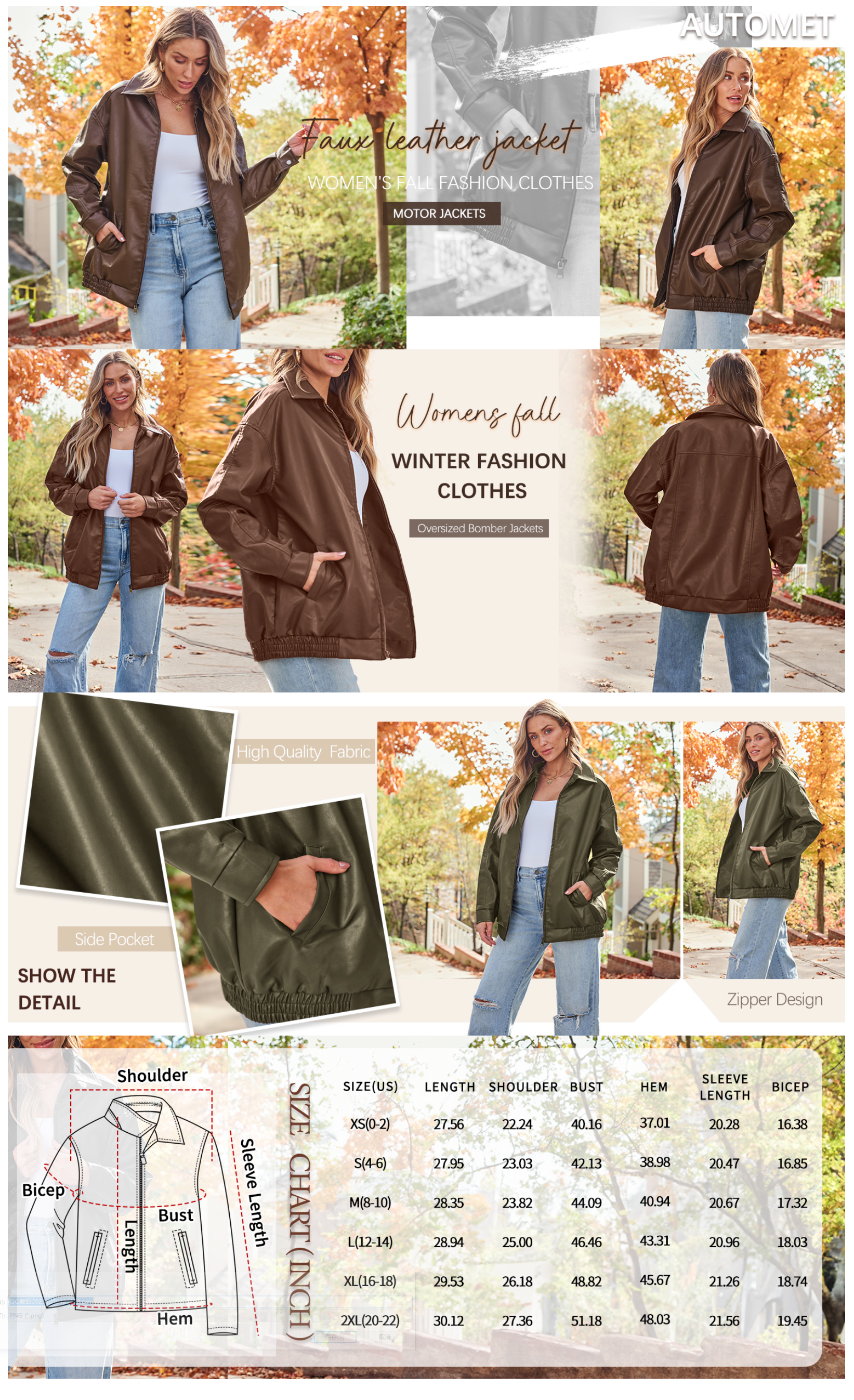 HXAO Faux Leather Black Jackets For Woman New Arrival Cropped Oversize Bomber Jacket Zip-Up Long Sleeve Coats Motorcycle Jackets